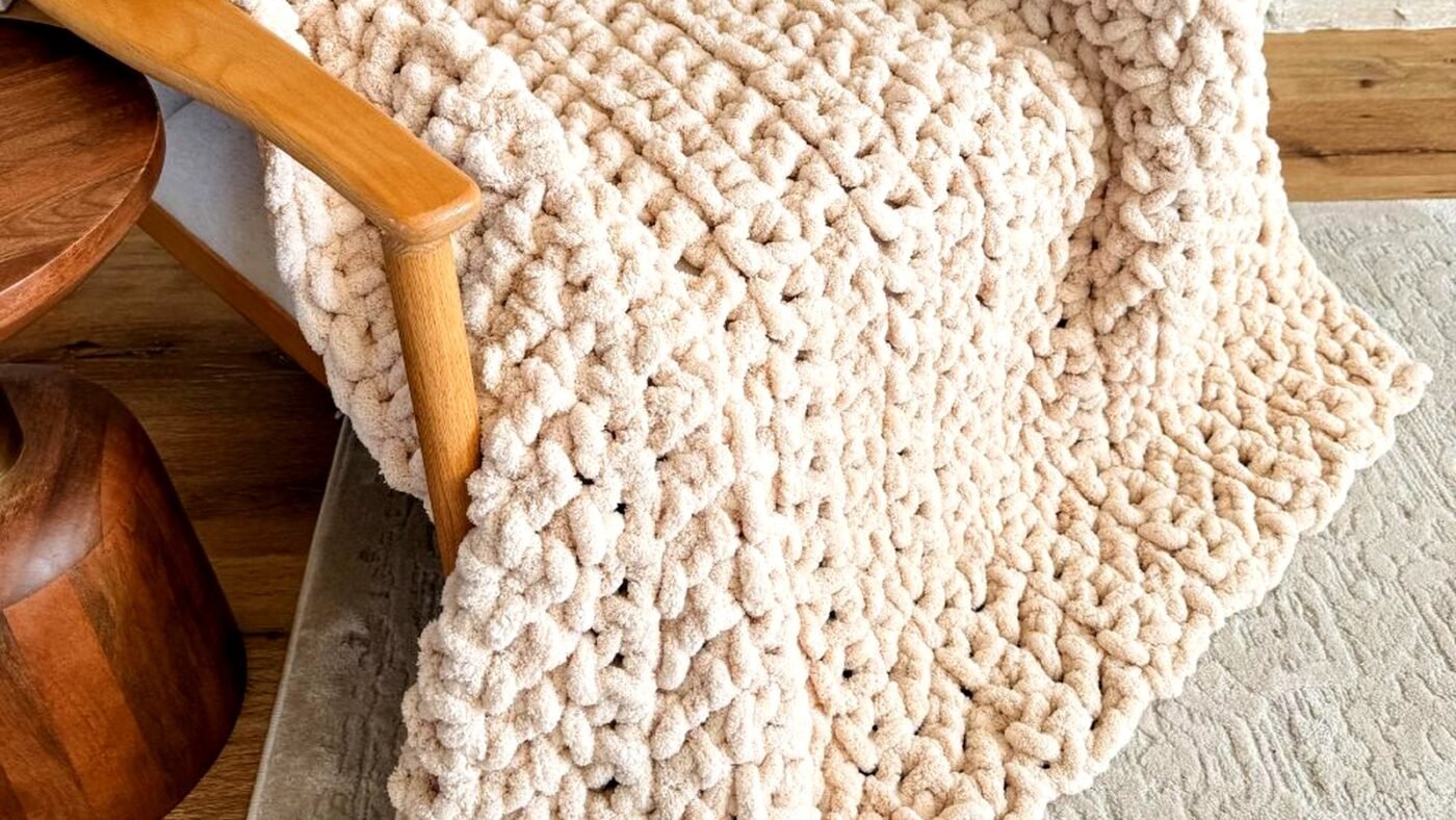 For a blanket that’s actually big enough to cover a couch or a bed, you need way more than you think. A throw size (like 50×60 inches) takes about 8-10 skeins of the bulky stuff. If you want it to actually cover a queen bed you’re looking at 15+ skeins easy. Just buy extra. You can always return it or make a matching pillow or whatever.