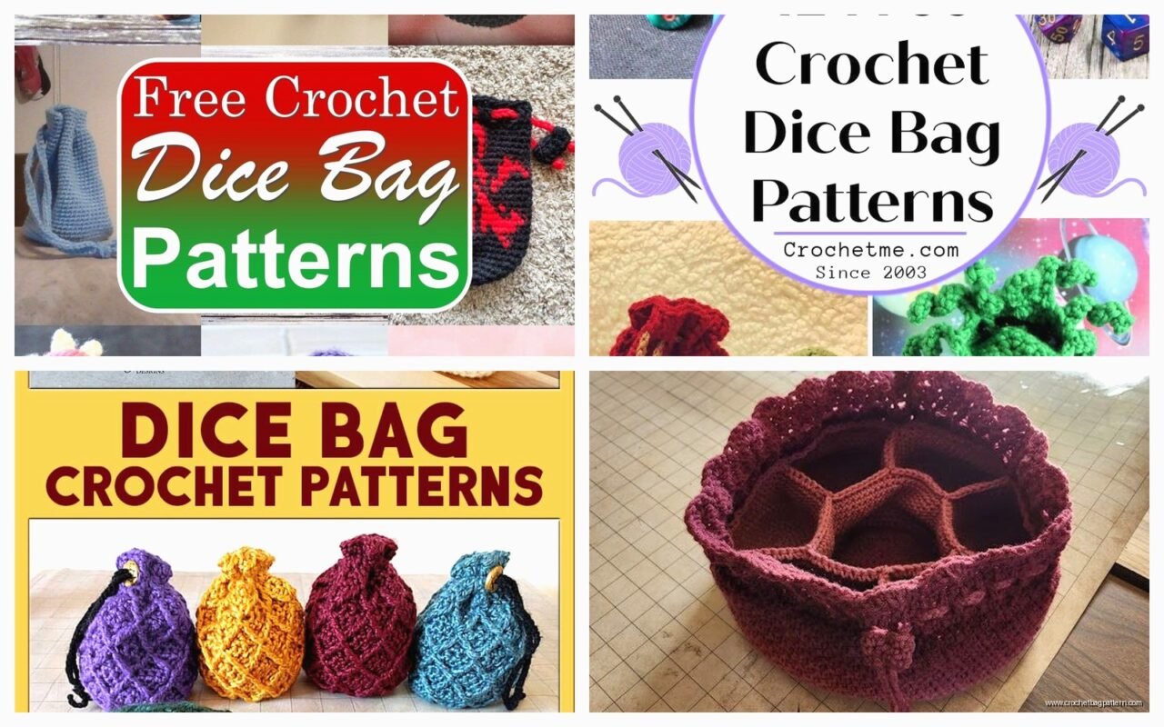 Last summer I made one using Bernat Blanket yarn with a bigger hook (size K I think?) and it came out really thick and cushiony which is good if someone’s carrying expensive metal dice. Takes less time too because it works up faster with the chunky yarn.