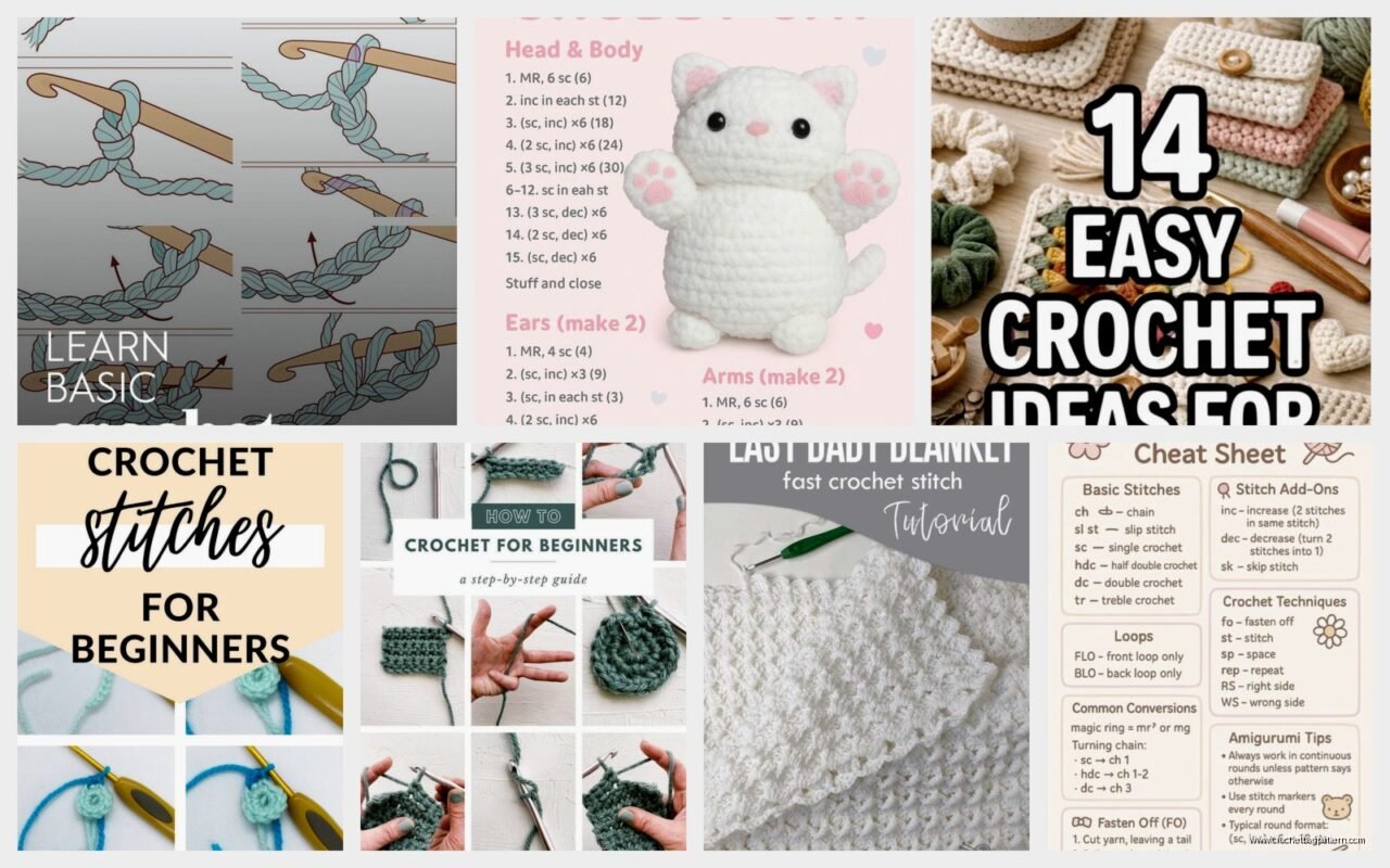 Just googling “easy crochet patterns for beginners” will get you a million blog posts with free patterns. Most are fine, some are poorly written. You’ll figure out which is which.