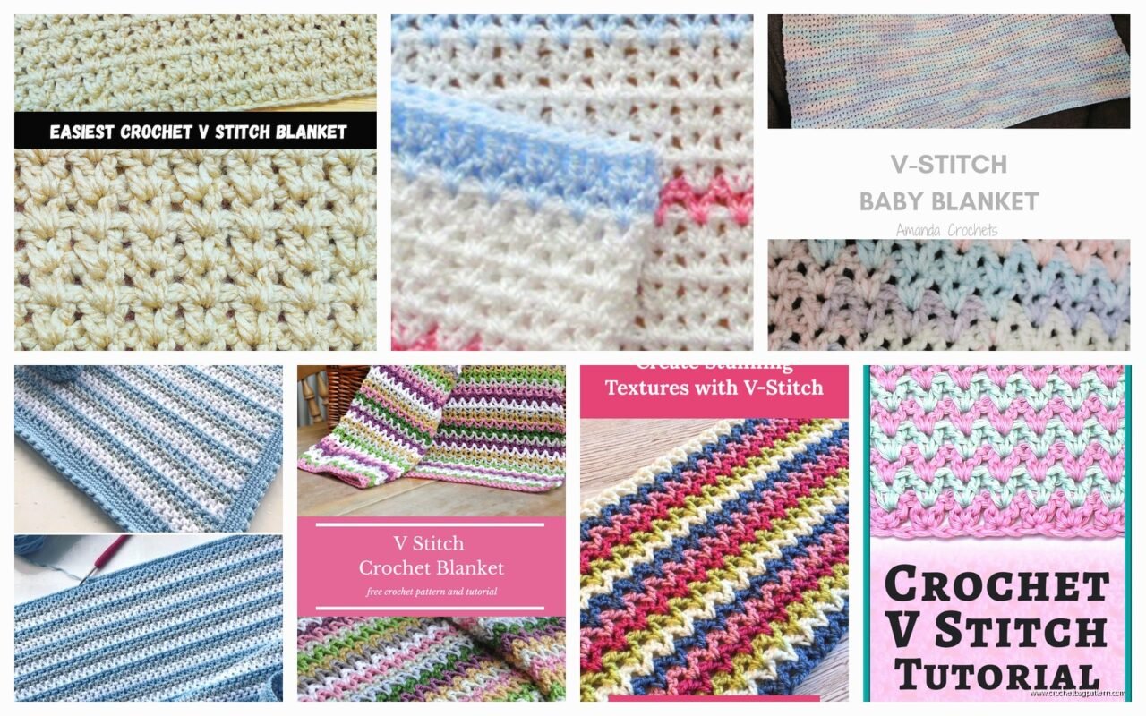 The V stitch is just double crochet, chain one, double crochet all in the same stitch. That’s it. You’re making little V shapes across the row. Then when you come back on the next row, you put your next V into the chain-1 space from the previous row. It creates this really open, lacey kind of texture that works up fast because there’s literally holes everywhere.
