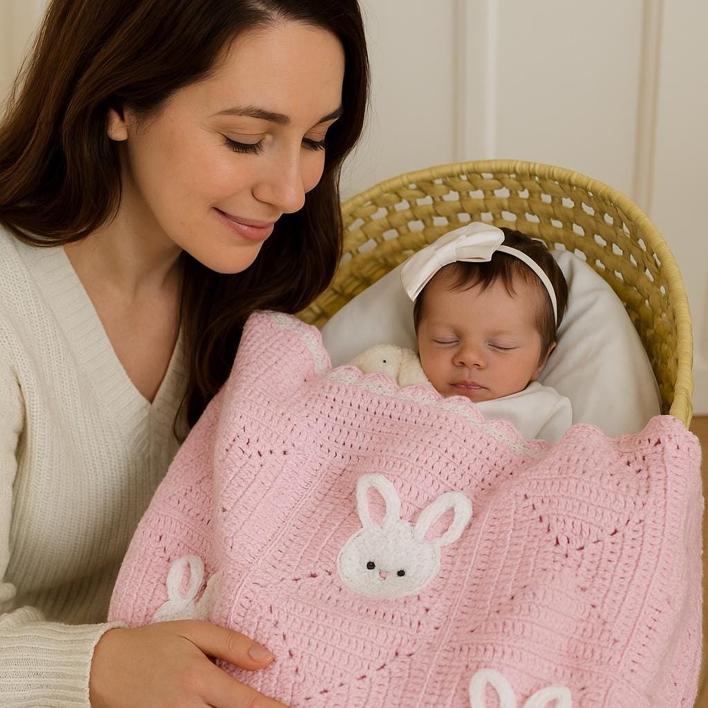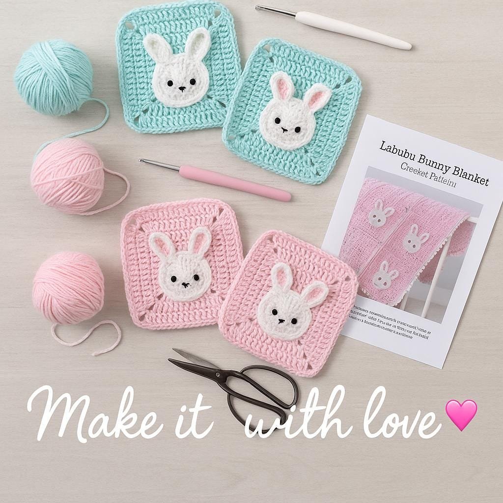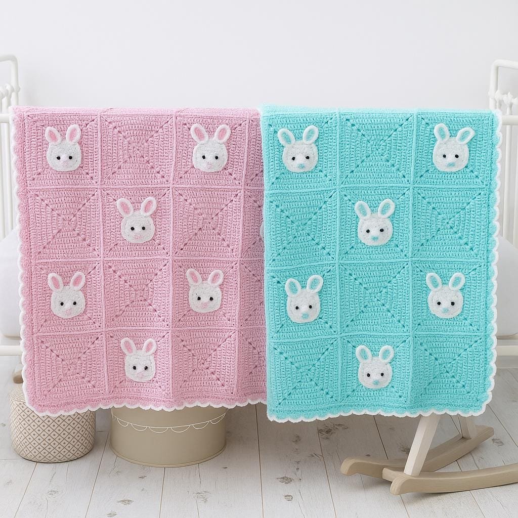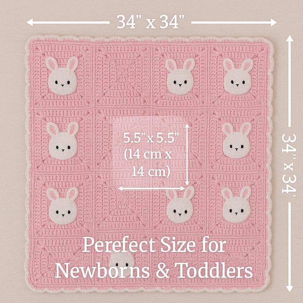 Labubu Bunny Baby Blanket Crochet Pattern – Granny Square Bunny Rabbit PDF, Easy Beginner Crochet Baby Blanket Pattern, Kids Nursery Gift