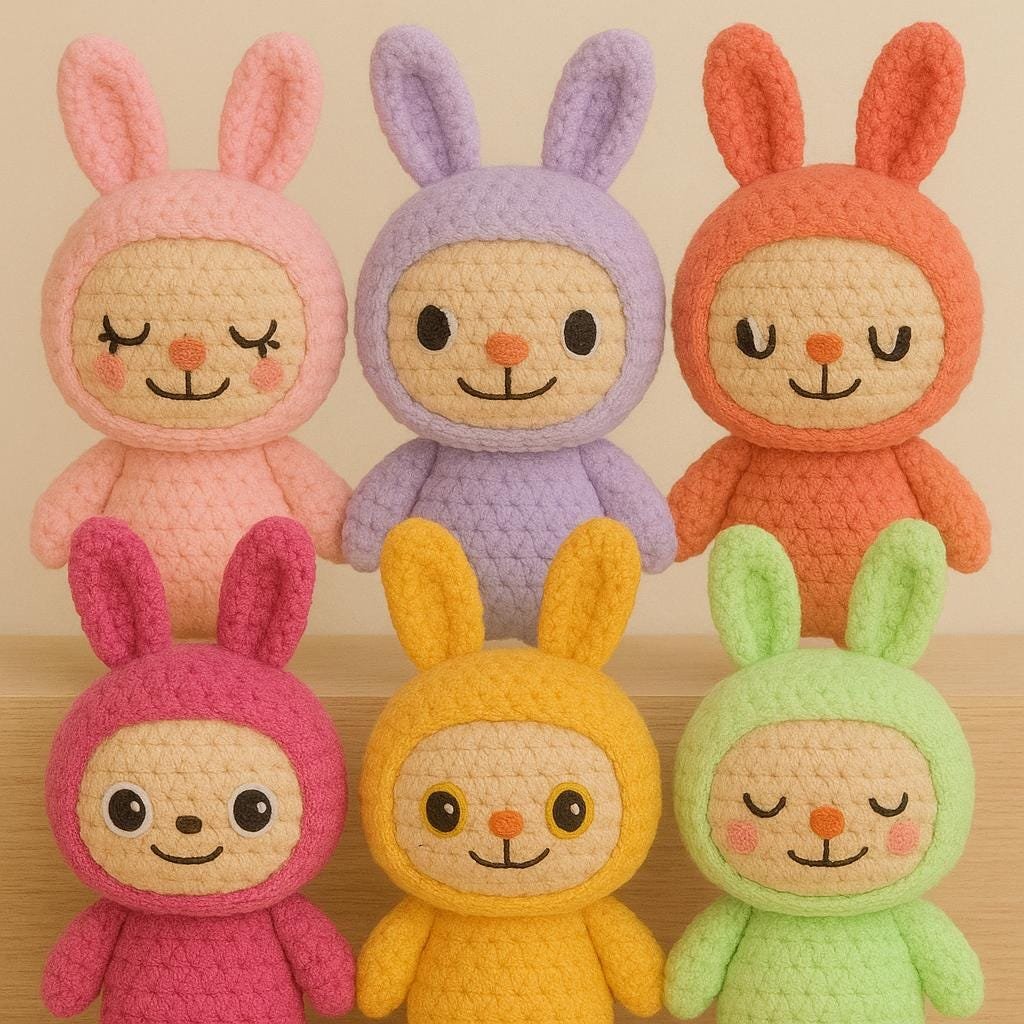 Labubu Crochet Pattern PDF – Amigurumi Bunny Plushie, Easy Beginner Crochet Toy Pattern, Kids Rabbit Stuffed Animal DIY Tutorial