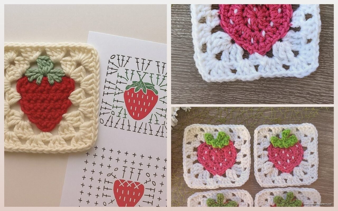 The granny square background doesn’t have to be solid either. You could do stripes or use variegated yarn or even do a different square pattern entirely and just appliqué the strawberry on top. Like a solid square or a half double crochet square instead of the traditional granny cluster pattern.